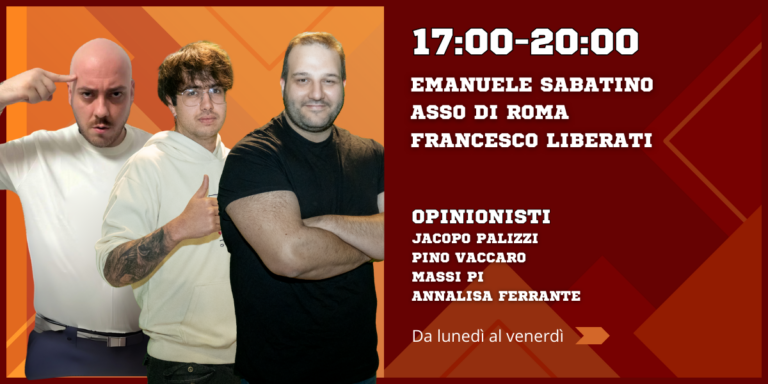 Il vostro pomeriggio prende vita dalle 17 alle 20 con Emanuele Sabatino, Asso di Roma, Francesco Liberati e Annalisa Ferrante.